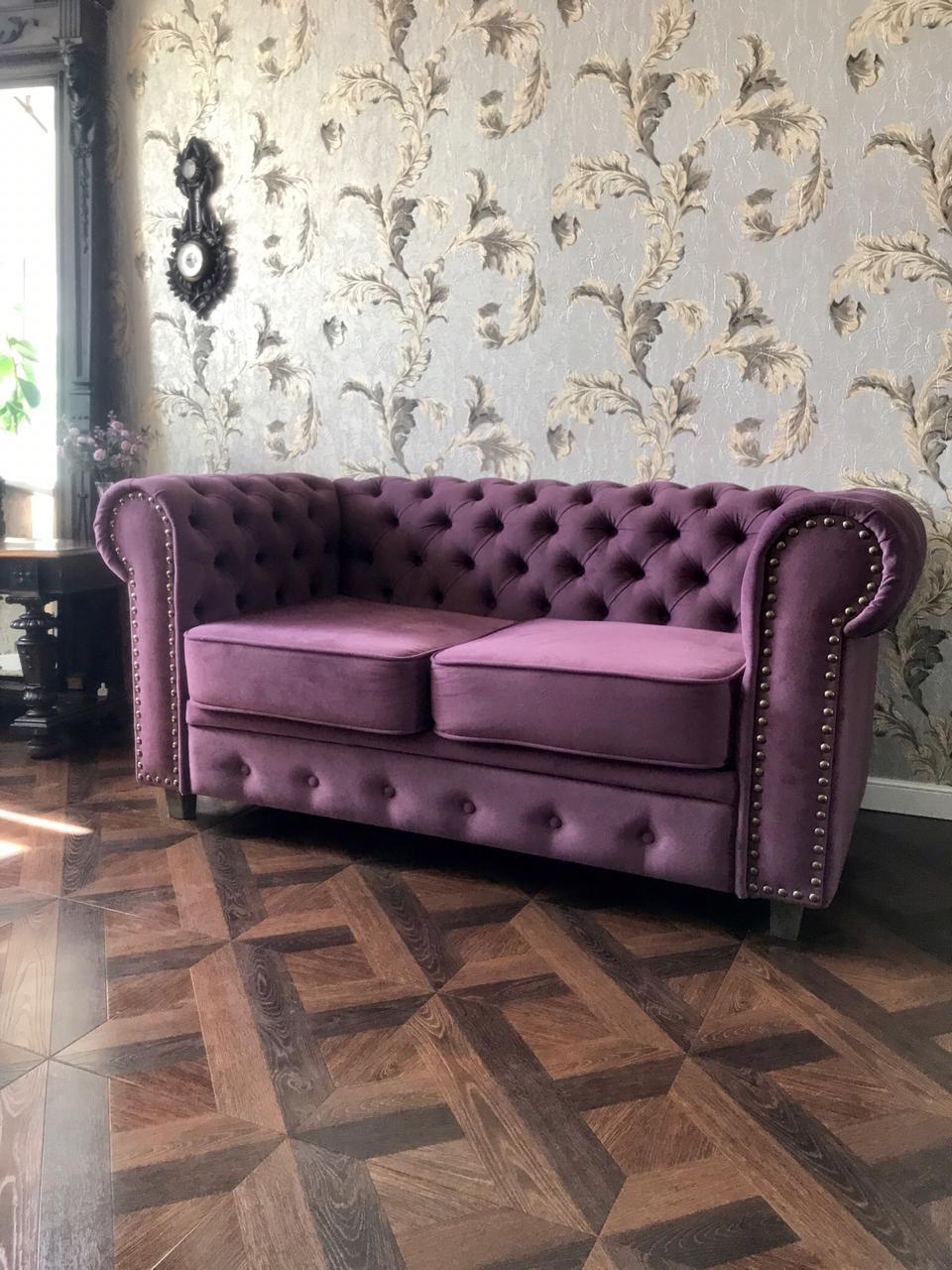 Диван Честер 2-х местный Фуксия